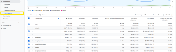 Landing page ve pages and screens kısımlarını ayıran en büyük özelik landing page’de kullanıcı siteye ilk hangi sayfayla giriş yaptığını göstermesi. pages and screens kısmı daha çok kullanıcılar toplamda hangi sayfada ne yaptığını vermesi.